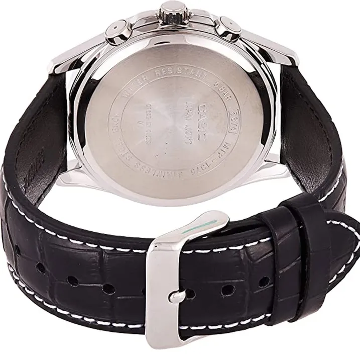 بند چرمی مرغوب این مدل، علاوه بر ظاهر کلاسیک، راحتی قابلتوجهی در استفاده روزمره ایجاد میکند. جنس آن طوری طراحی شده که در برابر تعریق و استفاده طولانیمدت مقاومت خوبی دارد و همزمان باعث ایجاد حس لوکس و رسمی روی مچ دست میشود. موتور این ساعت از نوع کوارتز دقیق کاسیو است که دقت بالایی در نمایش زمان دارد و با باتری کممصرف، عملکردی طولانیمدت را تضمین میکند. شیشه معدنی مقاوم ساعت نیز از صفحه در برابر خطوخشهای سطحی محافظت میکند.